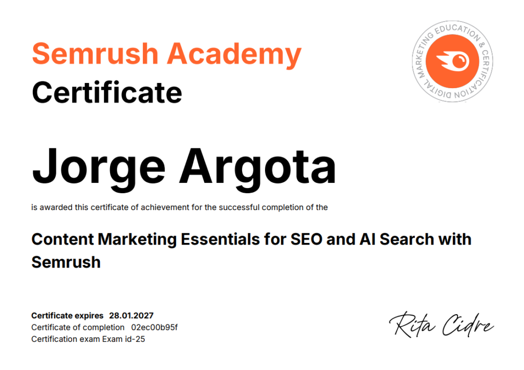 Completed the SEO and AI Search certfication with Semrush