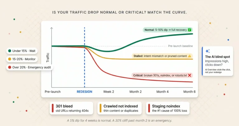 Website Redesign Traffic Drop Recovery: The Diagnostic Triage Table and Month by Month Timeline