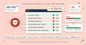 | Criminal defense | LawRank, Mockingbird, BluShark | PPC-heavy area; need agencies strong at both SEO and paid |