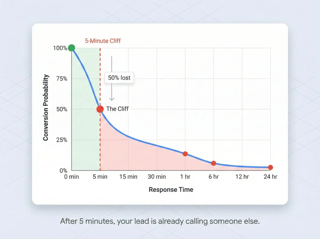 And what makes this even more urgent is that lead quality doesn’t degrade in a straight line; it falls off a cliff. A lead that sits for one hour is 7 times less likely to convert than one you call immediately. After 24 hours it’s 60 times less likely. At Percy we treated every incoming lead like a ticking clock because that’s exactly what it is, and the firms I work with now that take this seriously sign more cases without spending an extra dollar on advertising.