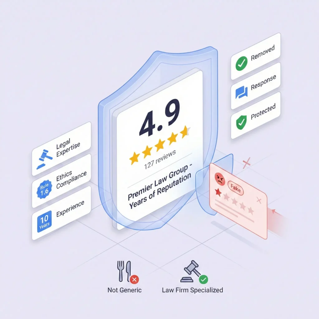 I spent 10 years inside a law firm watching reviews affect intake in real time. I’ve helped remove fake reviews, built review profiles from scratch, and learned how to respond without violating Rule 1.6. Most reputation agencies treat law firms like restaurants; that’s why they get attorneys in trouble.