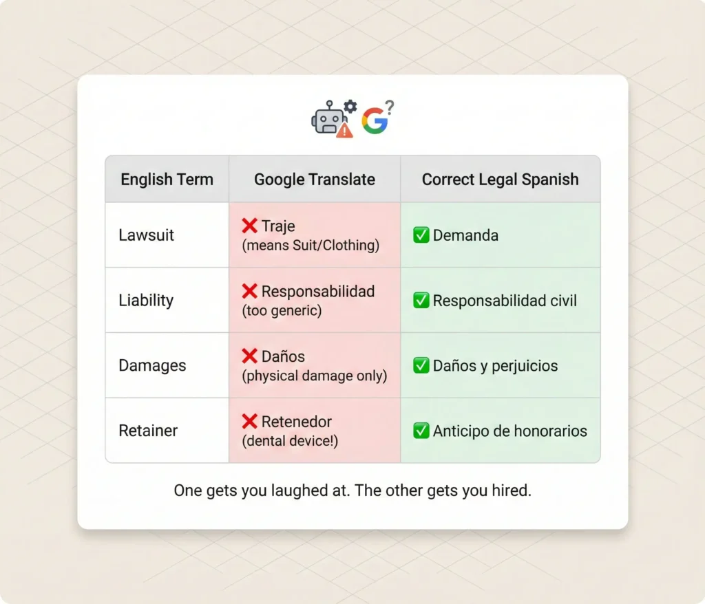 This isn’t about adding a Google Translate plugin. Automated translation produces legally inaccurate phrasing. Terms like “retainer,” “liability,” and “damages” have specific meanings that machine translation butchers.