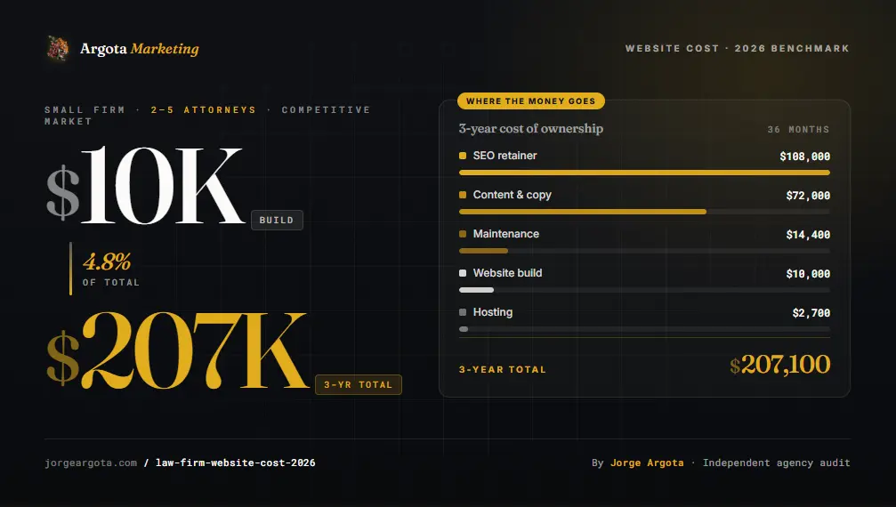 Tier 1 markets like NYC, LA, and Chicago require $120,000 to $300,000+ per year due to $150 to $500 PI CPCs. Tier 2 markets like Houston, Miami, and Dallas run $35,000 to $75,000 per year with moderate CPCs. Tier 3 emerging markets like Austin, Nashville, and Charlotte can compete effectively at $25,000 to $60,000 per year.